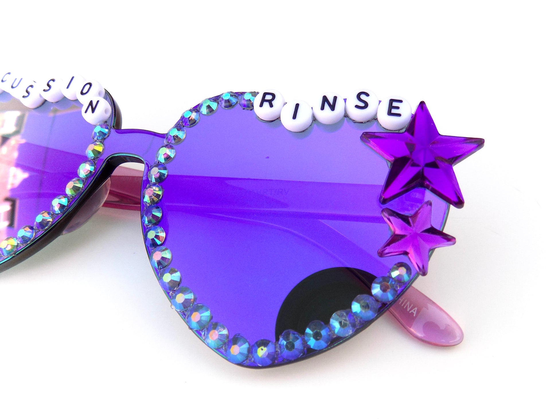 - adorned with purple stars & clear iridescent rhinestones